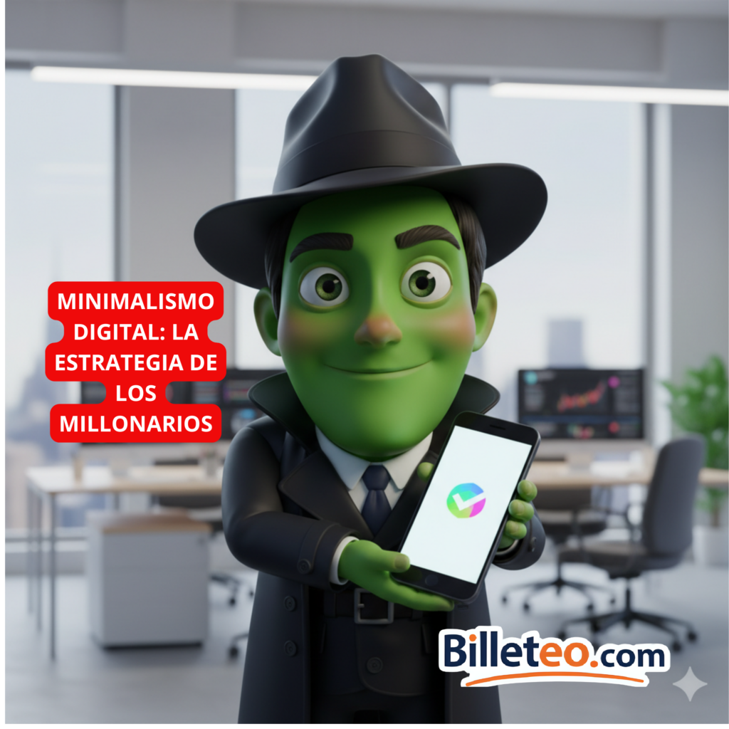 En Billeteo te enseñamos a aplicar el Minimalismo Digital no para ser zen, sino para ser rentable. Vamos a limpiar tu entorno digital para que tu cerebro vuelva a ser una máquina de hacer dinero.